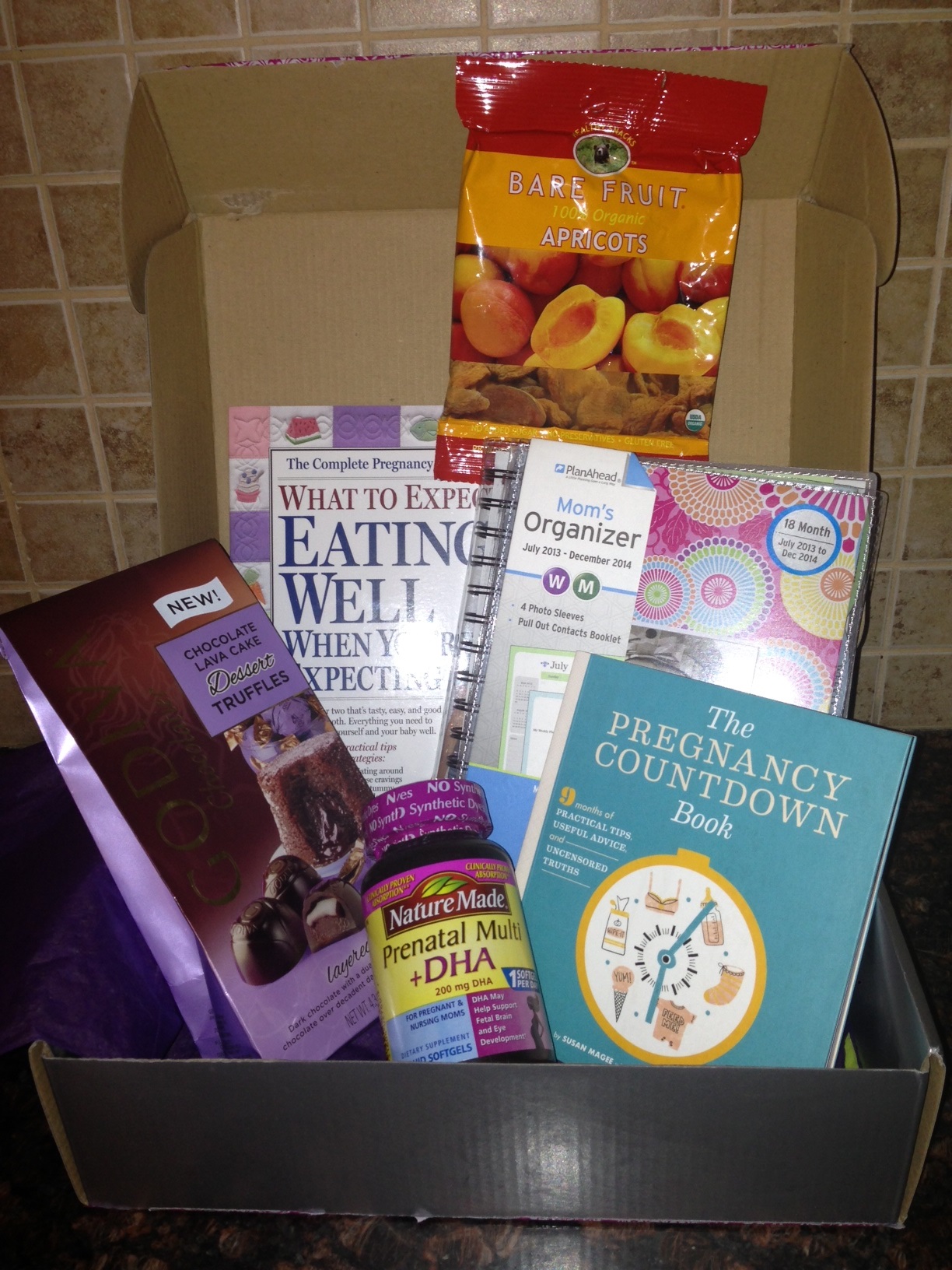Each box comes wrapped up very nicely with tissue paper and ribbon which makes it a really nice gift. The box also comes with a letter addressed to the mom to be discussing the current month of pregnancy and a description of the items included for that month. The month I received was for the first month of pregnancy and it included much needed items.