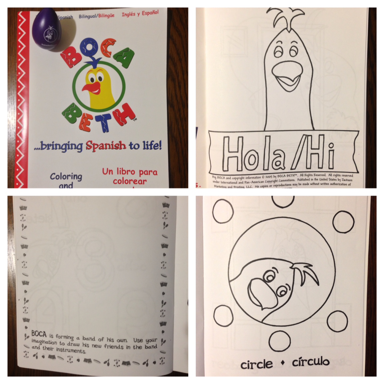 There was a coloring/activity book included in the kit which my daughter quickly claimed. It features Boca the puppet introducing different pictures and the words are written on the bottom of the page in both English and Spanish. I have been making copies of the pages because my daughter really wants to color them but I plan to use this book with my children when they are a little older and are beginning to read. There are many great games and interactive activities available on the website that I have been using with my children. My daughter’s favorite is Help BOCA Build His House/Casa.