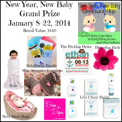 Welcome to the New Year, New Baby Giveaway Hop, hosted by Mama’s Baby Cupcakes and co-hosted by So Easy Being Green and Viva Veltoro! Join us in celebrating the New Year and Michelle’s new baby girl born this December, with this Giveaway Hop!